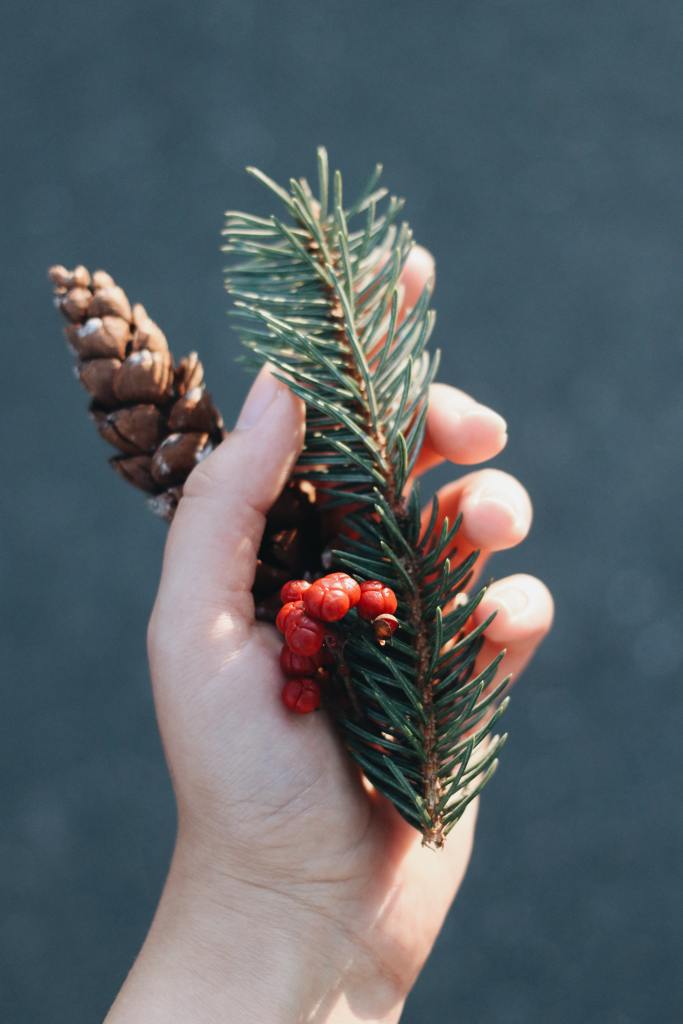 Una vez tenemos la postal hecha y enviada seguimos con los adornos navideños para casa. Puedes salir una tarde (antes de que oscurezca) a un bosque cercano y recoger algunas piñas, cerezos de madroño, tronquitos pequeños y hojas (te recomendamos que seas lo más respetuoso posible y que cojas siempre mejor lo que ya está en el suelo) y crees con estos elementos pequeños adornos navideños para colocar en rincones de casa como por ejemplo un centro de mesa con una bonita bandeja, o un ramillete en el recibidor de la entrada dentro de un pequeño jarrón o bote de cristal o incluso ¡colgados del árbol de Navidad! Quedará auténtico y original, hasta puedes montar un taller de manualidades en casa con la familia y que cada uno haga su propia creación ¡cogeréis ideas unos de otros!